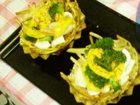 プリプリの卵とエビ、ブロッコリーが乗った一品。