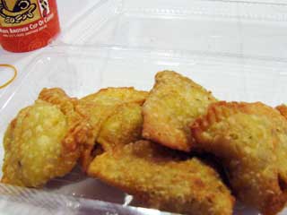 サモサ(写真最上段)とシシカバブをカフェで買った緑茶とともに。