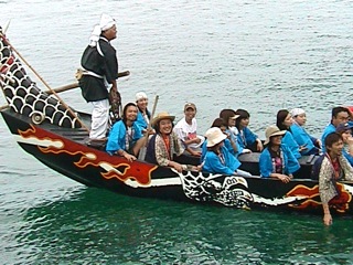 爬竜船(はりゅうせん)を漕ぎ競い合うことで