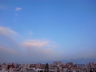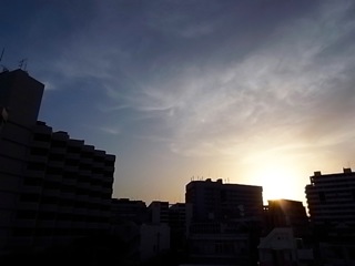 午前7時頃の北東の空。太陽からエネルギーをいただきます。