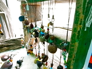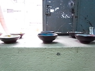 工芸はごろもの陶器。窓枠にディスプレイされているだけでアートです。