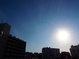 こちらが午前7時頃の北東の空。太陽光線がいつも以上に強く感じます!