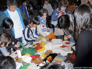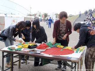 出来上がったマッチフラッグは、日比野さんが南アフリカに持って行き、