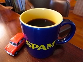 「SPAM」のマグカップ with Mini Cooperで。