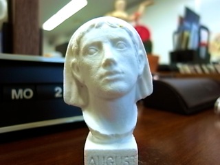写真は、誕生日にクルーからいただいたアウグスティヌス(消しゴム)。