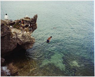 少年が海へ飛び込んでいる写真は、沖縄本島で撮影されたもの。