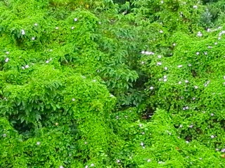 午前6時頃おとなりさんの朝顔の垣根をふと見下ろすと