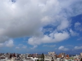 10時現在那覇地方は、雲の合間から青空が見えます。
