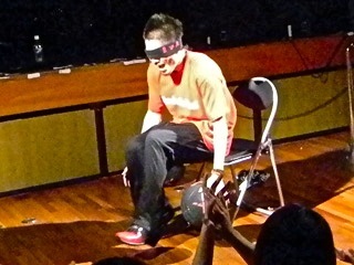 目隠しをしてのパフォーマンス。