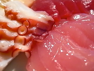 そして、お刺身。ツヤツヤ新鮮なお刺身とともにいただきます。