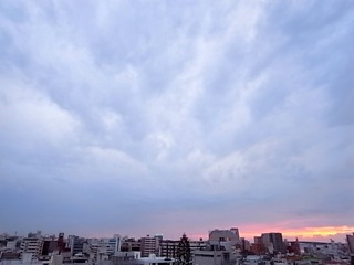 水平線に沈む夕陽と雲のアンジュレーションがキレイです。