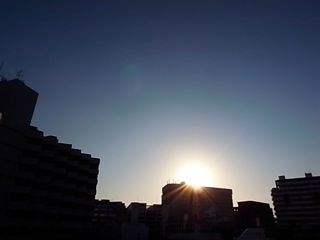 朝日と月の競演です。左上にかすかに見えるのが月です。
