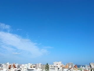 今日の沖縄の空。明け方からすばらしい空が広がりました。