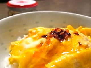 使用した男の料理、半熟オムレツ中華風味丼です(笑)。