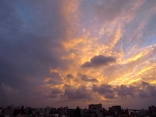 車を家において出かけようと空を見上げたらとても美しい夕焼け。