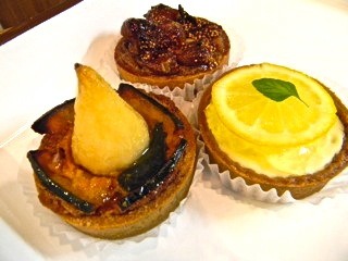 左が「かぼちゃと洋梨のタルト」、右は「レモンチーズタルト」、