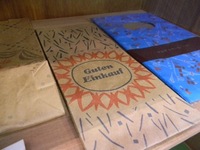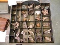 左と真ん中のはボタンで、右の画像はインド製の動物スタンプ。