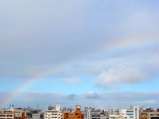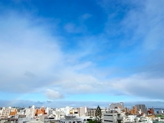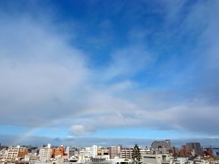 今朝、7時48分ごろ那覇地方の空にキレイな虹が架かりました。