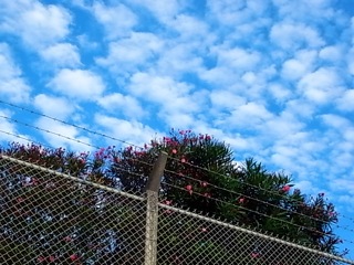 フェンスのなかも外も、梅雨明けの空が平等に広がります。