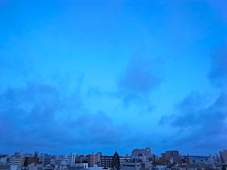 凄い勢いで流れる雲。梅雨明した沖縄の夜明けです。
