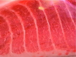 ご覧ください、A5ランクの牛肉のような本マグロ。