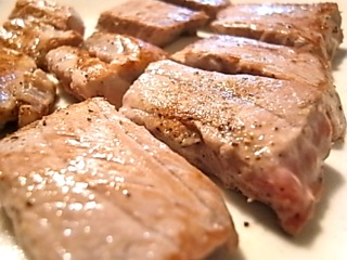 刺身にあきたら、両面を軽くソテーします(中はレアでね)。