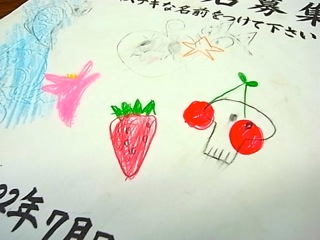 この通りにある泊キッズ児童クラブの子どもたちが描いた