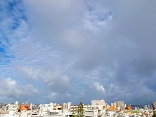 昨晩から徐々に低層雲に覆われる那覇市上空です。