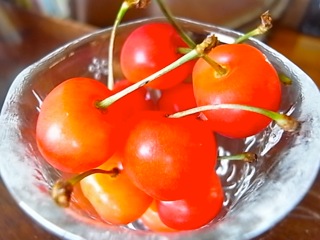 今日のおめざは、今が旬の山形産さくらんぼでございます。