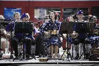 ロンドン沖縄三線会によるパフォーマンス。
