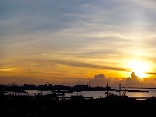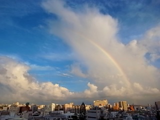 今朝の明け方、那覇市泊では虹を観ることができました。