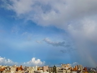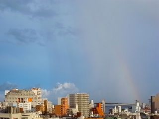 6時ごろザザっと雨が降り、太陽の光を浴びて虹が出現。