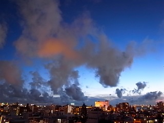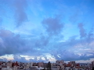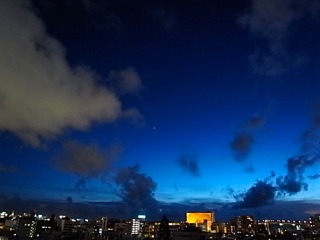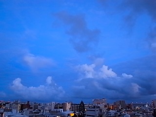 空の色が藍色に変わるころ、雲のディテールが見えてきました。