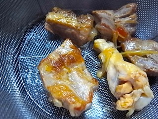 焦げ目を付けた軟骨ソーキ1kgを投入。余分な油と灰汁は小マメに除去。