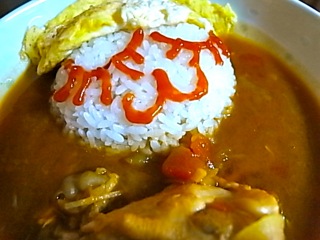 ふわっとオムレツをアタマにのせ、いい湯だなバージョンで。