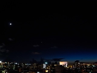 とても大好きな時間帯。月がポッカリ浮かんでました。