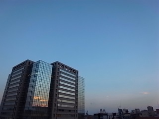 さて、東京の空です。ビルに映る夕焼け。東京の空です。