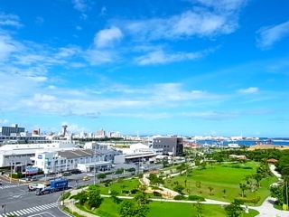 そして現在の浦添の空。緑の芝生も眩しいです。