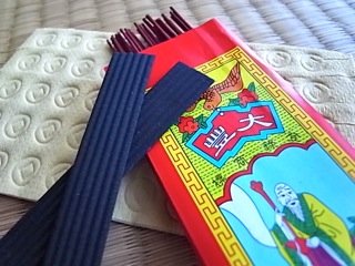 写真は、お盆用のお線香とデフォルトの沖縄のお線香。