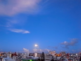 今朝の午前5時頃。ご先祖様をお見送りした満月が輝いてます。