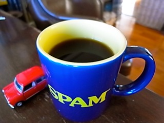 「SPAM」のマグカップ with Mini Cooperで。