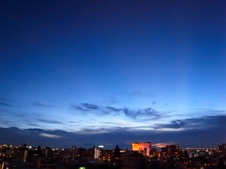 昨日の夕暮れ。南国特有の深い藍色に夕陽が溶けていきます。