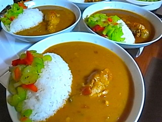 そんでもってこちらが大人メニューの白カレーと赤カレー。