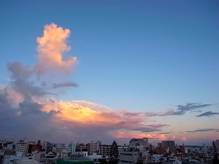 今日の沖縄の空。明け方は朝焼けがキレイでした。