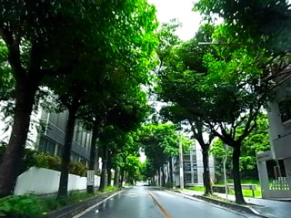 裁判所通りの並木道。木々の枝葉が大きく風に揺れてました。