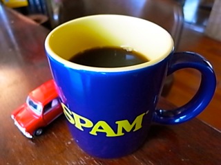 「SPAM」のマグカップ with Mini Cooperで。
