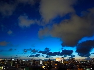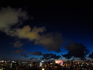かすかに夕陽の灯りが残る南西の空。とても好きな風景です。