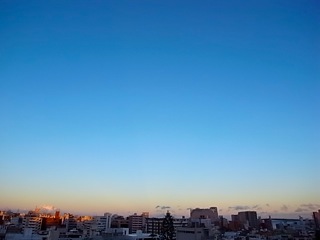 夕焼けが夜の空に溶けていく時間帯。心が落ち着きます。