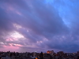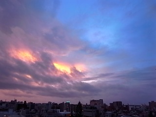 一日中曇り空の日曜日でしたが、夕方空が紅く染まりました。