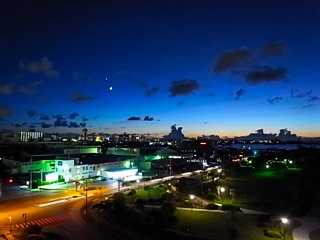黄昏時のこの色彩、大好きです。昨日もキレイな三日月が浮かんでました。